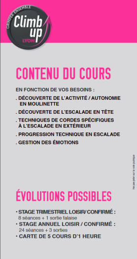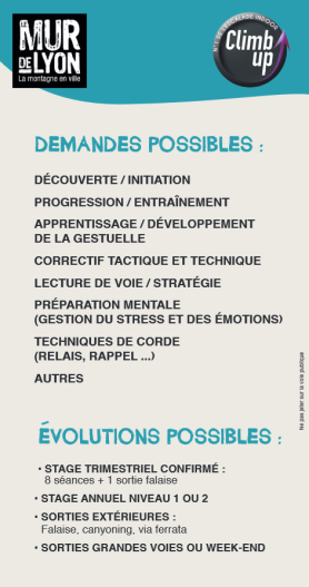 A Climb up Lyon, MRoc Part-Dieu ou MRoc Villeurbanne les cours peuvent avoir une durée d'1h, 1h30 ou 2h.